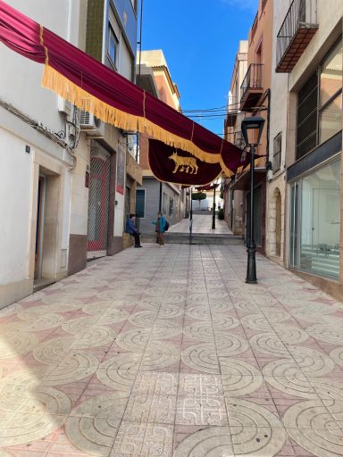 En nuestros mercados romanos, encontrarás decoraciones en color burdeos o granate, complementadas con pasamanerías doradas que añaden un toque de elegancia y autenticidad. Los flecos y las banderas pintadas a mano que representan a la loba con Rómulo y Remo destacan en cada rincón, evocando la rica historia de la antigua Roma. Nuestro mercado no solo es un lugar para adquirir productos, sino también una experiencia inmersiva que transporta a los visitantes a tiempos pasados.