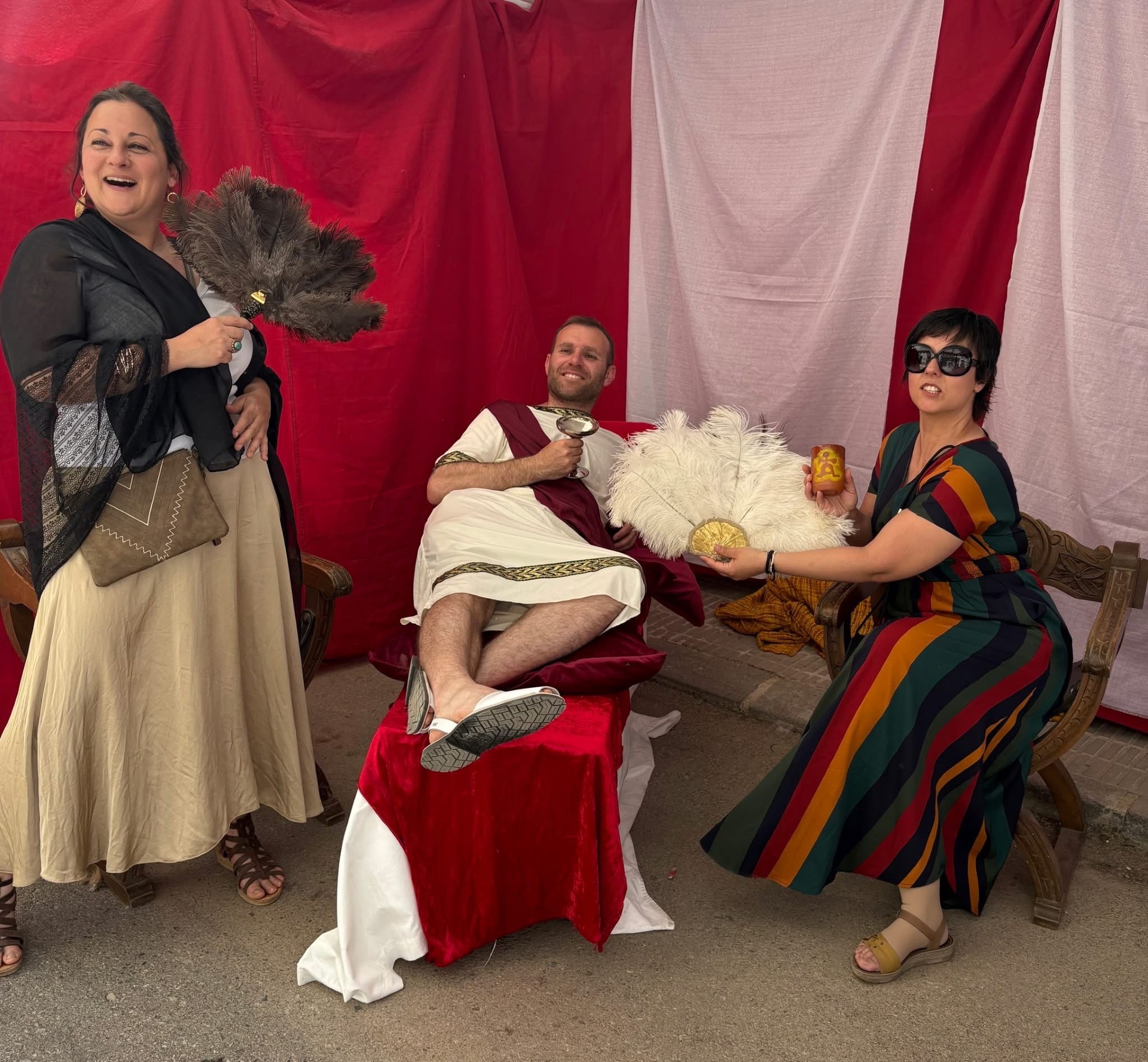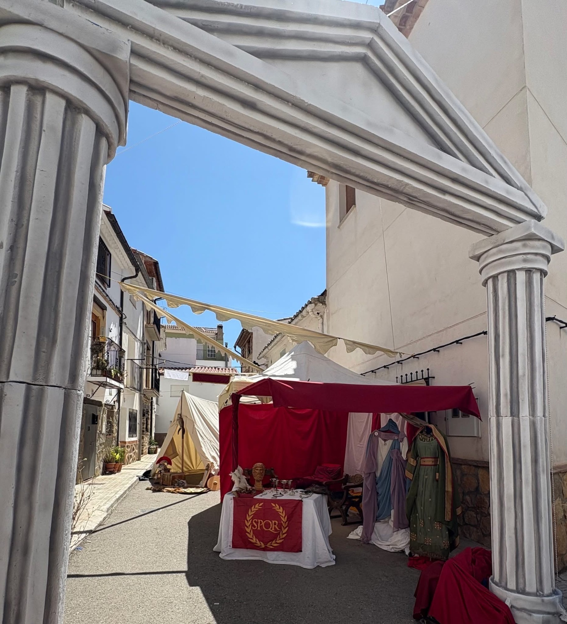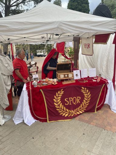 Además, contamos con un portalón de entrada romano que simula la entrada a una villa romana, haciendo que cada visitante se sienta como si estuviera cruzando el umbral de una época histórica. Para enriquecer aún más la experiencia, tenemos un grupo de recreación que interactúa con el público, compartiendo historias y costumbres de la época, lo que convierte a nuestro mercado en un evento inolvidable para grandes y pequeños.